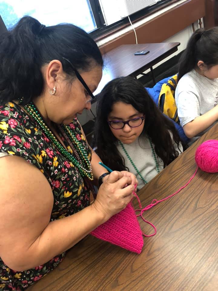OLG also sponsors a Crochet Club that follows the OLG motto “We work hard for others.” The club originally launched to create warming caps for children receiving cancer treatment at Lurie Children’s Hospital. Beyond the creative process, the service project helped OLG students to understand the impact of simple deeds of kindness. There are unexpected benefits too – the activity sparked conversations leading to improved mental health and bridged generations with grandparents helping to crochet at home.